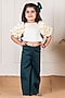Featuring an off-white top for girls in scuba base. It is paired with emerald green pants. Accessorize it with matching hair accessories and sandals for a stylish ensemble, ideal for birthday parties.