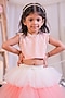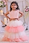 Peach & Off-White Net Frilled Lehenga Set For Girls