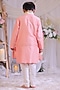 Peach & Off-White Roman Silk Kurta Set For Boys