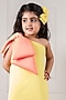 Featuring a peach and yellow one-shoulder bow dress for girls in scuba base. Accessorize it with matching hair accessories and sandals for a stylish ensemble, ideal for any festive occasion or birthday party.