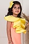 Featuring a peach and yellow dress for girls in scuba base with ruffle detail. Accessorize it with matching hair accessories and sandals for a stylish ensemble, ideal for any festive occasion or birthday party.