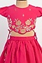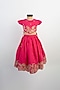 Pink Silk Thread Embroidered Lehenga Set For Girls
