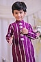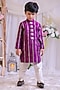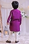 Featuring a purple kurta for boys in silk base with a chinese collar and cutdana work. It is paired with cotton silk churidar pants. Style it with juttis and a watch for a festive occasion or pooja ceremony