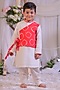 Red & White Roman Silk Bandhej Work Kurta Set For Boys