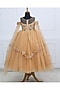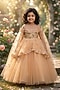 Biscuit Brown Net & Satin Embroidered Gown For Girls