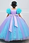 Lavender & Aqua Blue Net & Satin Embroidered Dress For Girls
