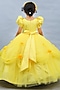 Featuring a light yellow ball gown for girls in net and satin base with floral embroidery. Style it with sandals and hair accessories for vacation wear or playdate.