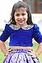 Royal Blue Brocade Pleated Skirt Set For Girls