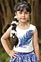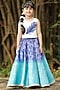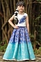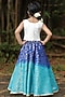 Featuring a white sleeveless top for girls in brocade base with peacock embroidery. It is paired with a royal blue and sky blue skirt having pearl hem. Accessorise it with matching hair accessories and sandals for a stylish ensemble, ideal for a festive occasion or sangeet ceremony.