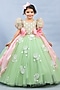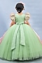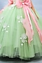 Featuring a sage green gown for girls in net base with bow detailing and applique floral work. Style it with sandals and hair accessories for vacation wear or playdate.