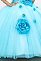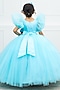 Sky Blue Net & Satin Embroidered Ball Gown For Girls
