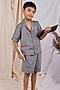 Featuring a dark grey shirt for boys in linen and lyocell base. It is paired with shorts. Style it with a classic pair of shoes for vacation wear or playdate.