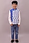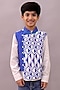 Blue Cotton Geometric Printed Bundi Jacket For Boys