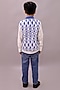 Featuring a blue bundi jacket for boys in a cotton base with geometric print. Perfect wear for festive occasions and cultural events.