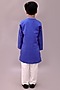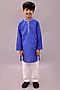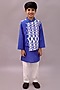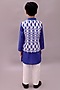 Featuring a blue nehru jacket for boys in cotton base with geometric print. It is paired with a white kurta and pyjama pants. Style it with a watch and a classic pair of shoes for a any event, wedding or festive ceremonies
