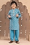 Blue Cotton Jaipur Printed Kurta Set For Boys