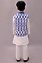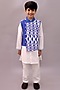 Blue & White Cotton Geometric Printed Nehru Jacket Set For Boys