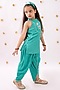 Featuring a green top for girls in rayon base with foil print. It is paired with printed dhoti pants. Style it with sandals and hair accessories for a complete look.