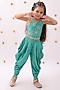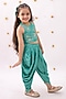 Featuring a green top for girls in rayon base with foil print. It is paired with printed dhoti pants. Style it with sandals and hair accessories for a complete look.