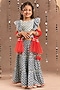 Featuring a grey lehenga for girls in cotton base with jaipur print. It is paired with a choli and a net dupatta. Style it with sandals and hair accessories for a festive occasion or wedding ceremony.