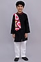Featuring a multi-colored kurta for boys in cotton base with geometric print. It is paired with pyjama pants. Style it with a watch and a classic pair of shoes for any event, wedding or festive ceremonies.