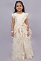 Featuring an off-white lehenga for girls in chanderi base with foil print. It is paired with a choli and a dupatta. Style it with cute hair accessories and sandals for a wedding or festive occasion.