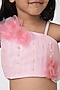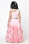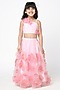 Featuring a pink lehenga for girls in net base with 3D floral embellishments. It is paired an organza and net top. Style it with cute hair accessories and sandals for a festive occasion or wedding ceremony.