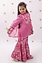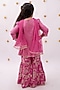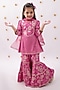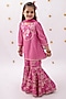 Featuring a pink kurta for girls in rayon base with foil print. It is paired with printed sharara pants and a dupatta. Style it with juttis and a cute hair accessory, perfect for festive gatherings, weddings or family celebrations.