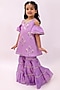 Featuring a purple kurta for girls in chanderi base with foil print. It is paired with printed sharara pants. Style it with juttis and a cute hair accessory, perfect for festive gatherings, weddings or family celebrations.