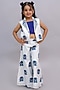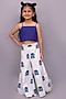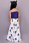 Featuring a white and blue jacket for girls in cotton base with floral print and mirror work. It is paired with a bustier and pants. Style it with sandals and hair accessories for festive occasions or sangeet ceremony.