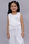 Featuring a white top for girls in polyester base with 3D floral embroidery. It is paired with pants. Style it with jewellery and juttis for a festive occasion, wedding or engagement ceremony.