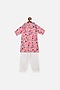 Featuring a baby pink kurta in cotton base with floral print. It is paired with contrasting white salwar pants.