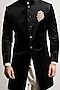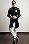 Featuring a black indo-western jacket in velvet base with motif hand embroidery. It is paired with a contrasting kurta and pants.