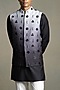 Featuring a black ombre nehru jacket in raw silk base with stone embroidery. It is paired with a cotton viscose kurta and cotton silk white pants. Style it with classic mojris or loafers and a statement watch for a refined traditional look, Ideal for festive gatherings, wedding functions, or family celebrations.