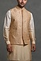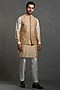 Golden & White Raw Silk Embroidered Nehru Jacket Set