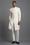 Ivory Raw Silk Thread Embroidered Sherwani Set