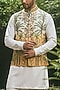 Featuring a mustard ombre nehru jacket in dupion silk base with thread embroidery. It is paired with a cotton viscose kurta and off-white cotton silk pants. Style it with embroidered loafers for a festive occasion, wedding, sangeet or engagement ceremony, radiating charm and elegance.