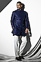 Featuring a navy blue indowestern jacket in silk jacquard base with glass cutwork. It is paired with a kurta and off-white cotton silk pants. Style it with mojaris for a wedding, sangeet or engagement ceremony, radiating charm and elegance.