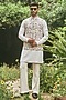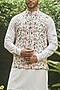 Featuring an off-white nehru jacket in raw silk base with thread embroidery. It is paired with a cotton viscose kurta and off-white cotton silk pants. Style it with embroidered loafers for a festive occasion, wedding, sangeet or engagement ceremony, radiating charm and elegance.
