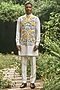 Featuring an off-white nehru jacket in raw silk base with thread embroidery. It is paired with a cotton viscose kurta and off-white cotton silk pants. Style it with embroidered loafers for a festive occasion, wedding, sangeet or engagement ceremony, radiating charm and elegance.