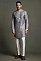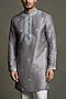 Featuring a pastel grey kurta in dola silk base with thread embroidery. It is paired with cotton silk white pants. Style it with classic mojris or loafers and a statement watch for a refined traditional look, Ideal for festive gatherings, wedding functions, or family celebrations.