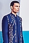 Featuring a navy blue bandhgala jacket in cotton poly blend base with hand embroidery and seam pockets. This contains only one piece.