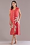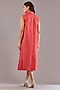 Coral Pure Linen Applique Embroidered Sleeveless Midi Dress