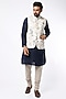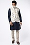 Featuring a beige nehru jacket in pure linen base. Ideal for any festive occasions.