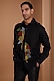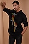 Featuring a black shirt in pure linen base with embroidery. Style the shirt with jeans and boots for a casual outing or an evening party.