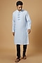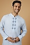 Featuring a sky blue kurta in linen base with embroidery.
