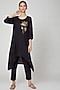 Featuring a navy blue asymmetrical tunic in linen base with floral embroidery. This contains only one piece.