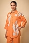 Featuring an orange shirt in pure linen base. It is paired with pants. Accentuate it with delicate pearl or pastel statement earring and elegant heels for a stylish ensemble, ideal for festive brunches, family function or daytime celebrations