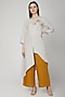 Featuring a silver grey asymmetric tunic in linen base with floral hand embroidery. This contains only one piece.