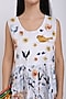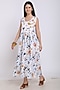 Featuring a white gathered maxi dress in pure linen base with digital print and hand embroidery. This contains only one piece.